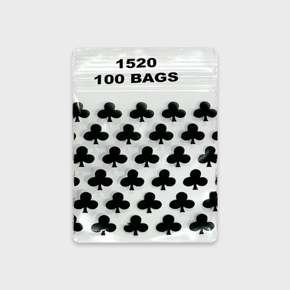 Resealable Plastic Bags 38×51 mm with Black Club Patterns