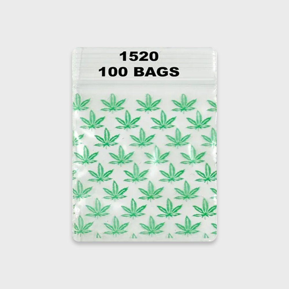 Resealable Plastic Bags 38×51 mm with Green Leaf Patterns
