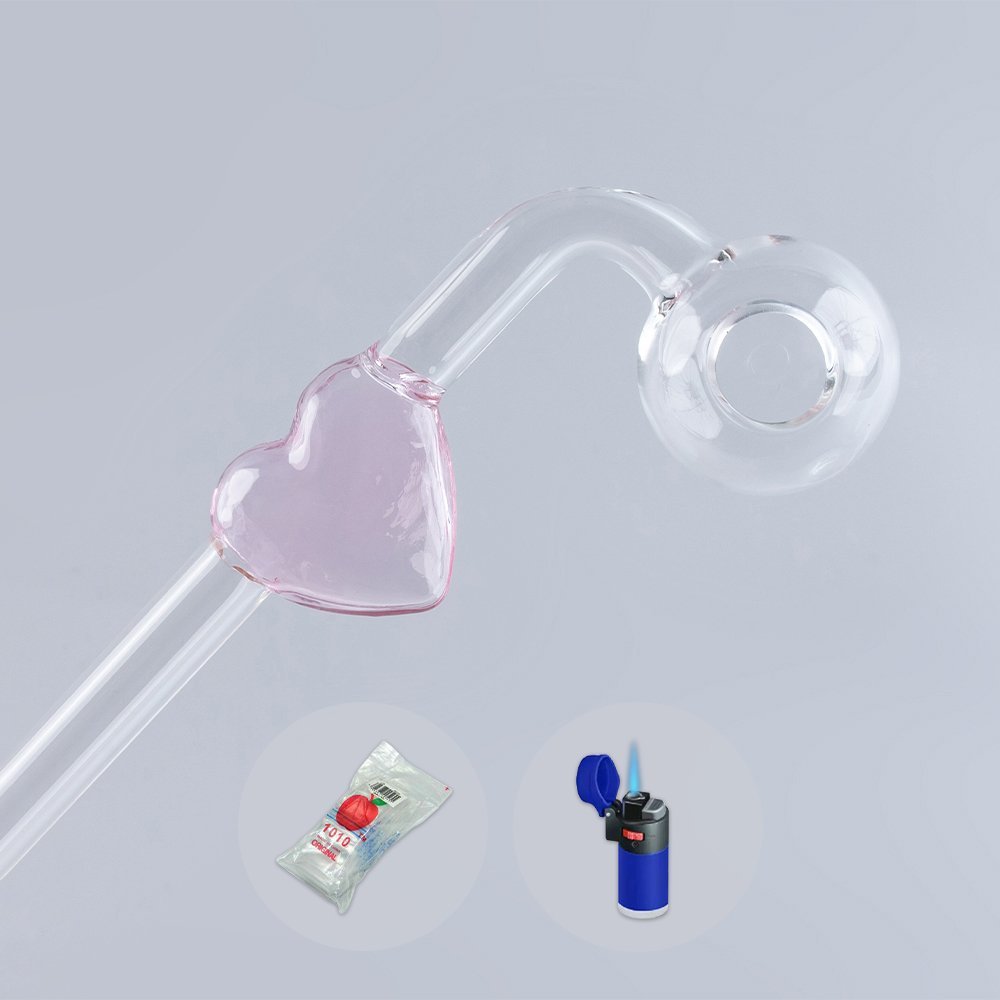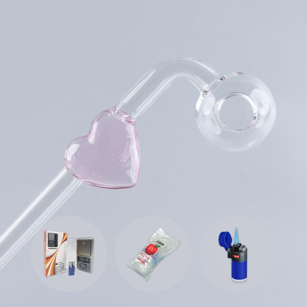 Combo Full X1 Love Heart Sweet Puff Glass Pipe 14cm Pink and Balancer