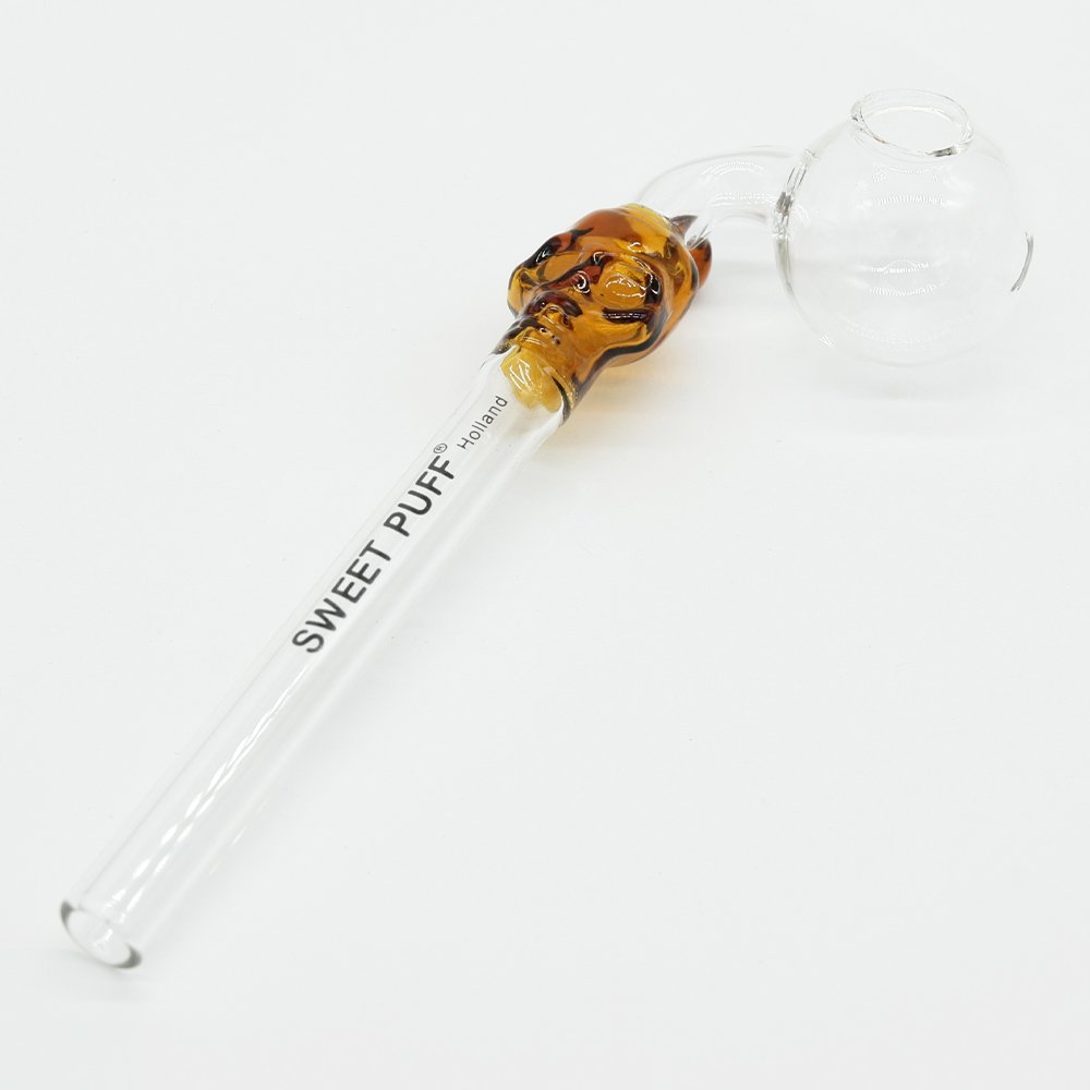 Skull Sweet Puff Glass Pipe 14cm Amber Skull and Balancer