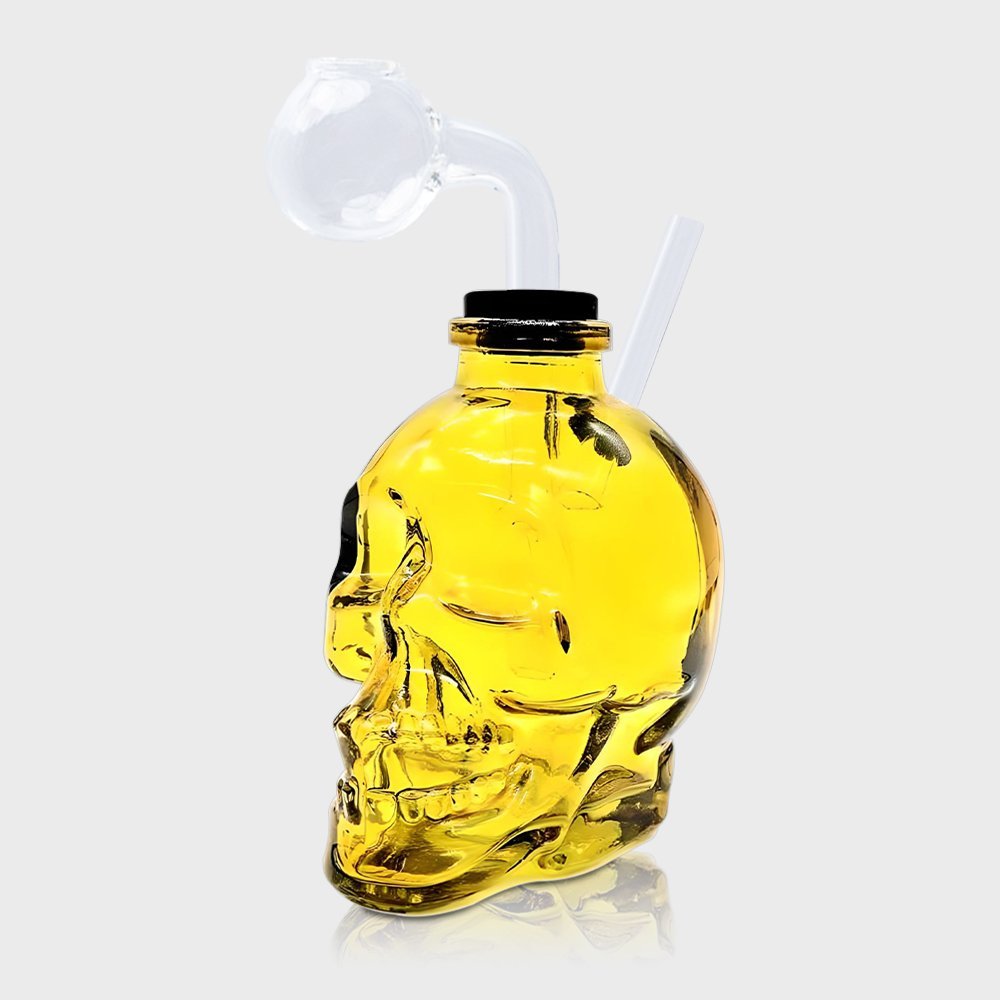 Amber Skull Bubbler with Glass Pipe 11cm