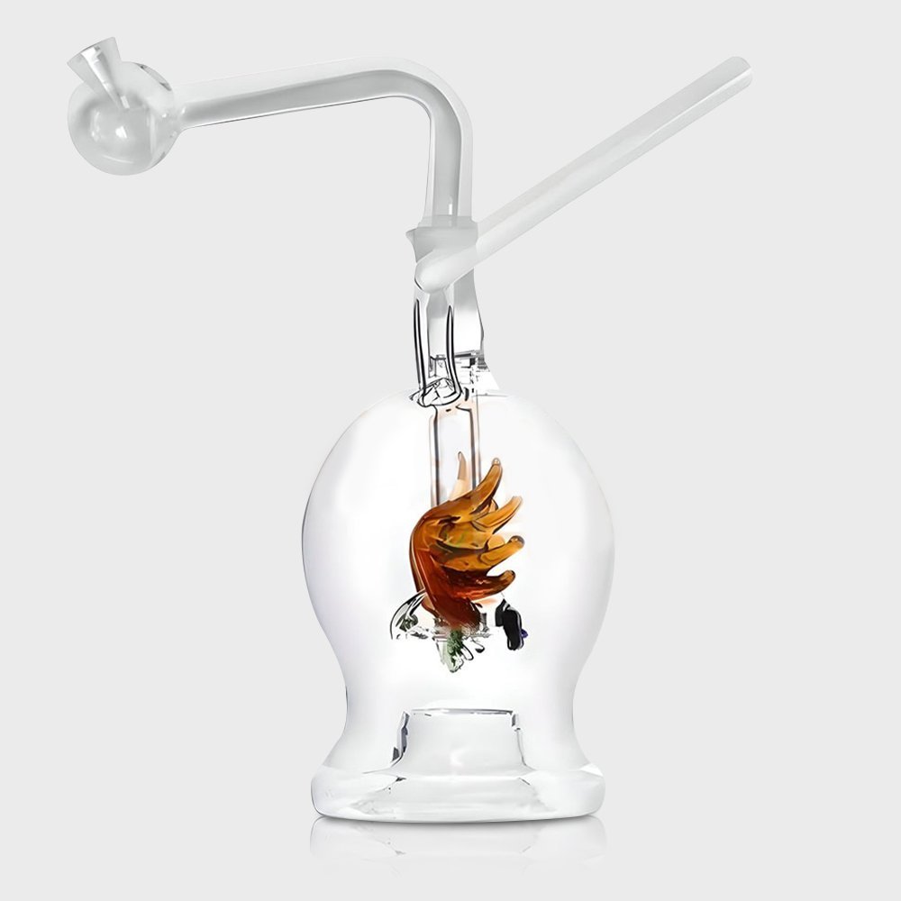 Glass Water Pipe Amber Eagle 11cm with Mini Bubbler Glass Pipe