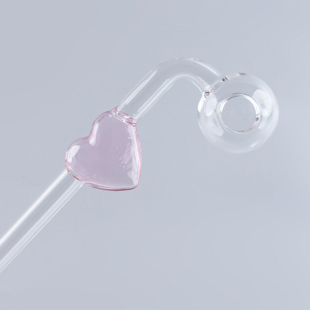 Love Heart Sweet Puff Glass Pipe 14cm Pink and Balancer Pack X6