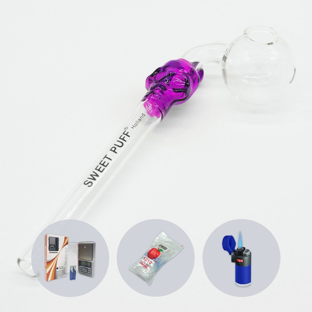 Combo Full X1 Curved Sweet Puff Glass Pipe 14cm Purple Balancer