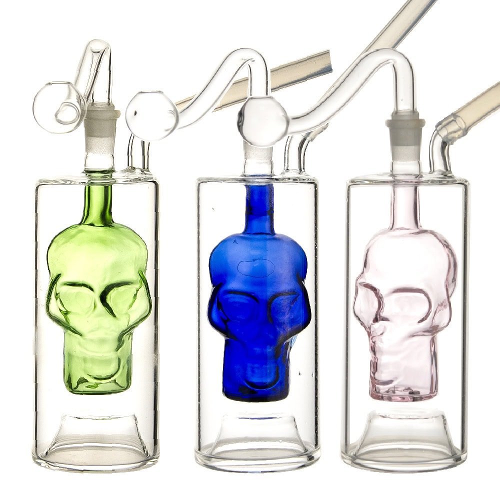 Elevate your smoking experience to a whole new level with the BLue Skull Glass Pipe 13cm with Mini Bubbler Glass Pipe, surpassing the traditional sweet puff pipes. This product features a distinct design reminiscent of specialized water pipe devices, meticulously crafted for optimal performance. Measuring at 13cm and adorned with a prominent blue skull motif, it presents an ideal choice for refined smoking enjoyment at your convenience.