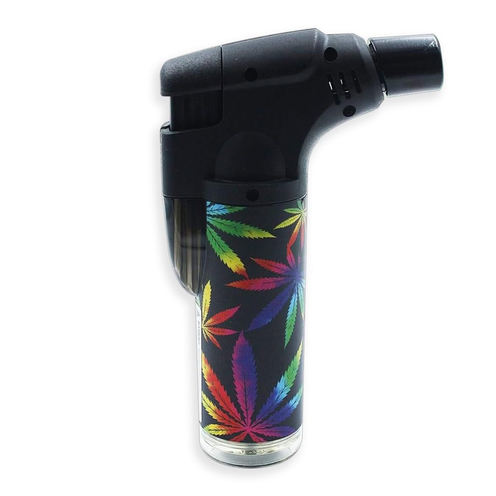 The Leaf Stand Up Blow Jet Lighter is a distinctive jet lighter designed specifically for smoking needs with bongs, dab rigs, or specialized water pipes. The product features a shotgun-style design with the ignition button located on the back, making it extremely convenient to use with just your thumb.