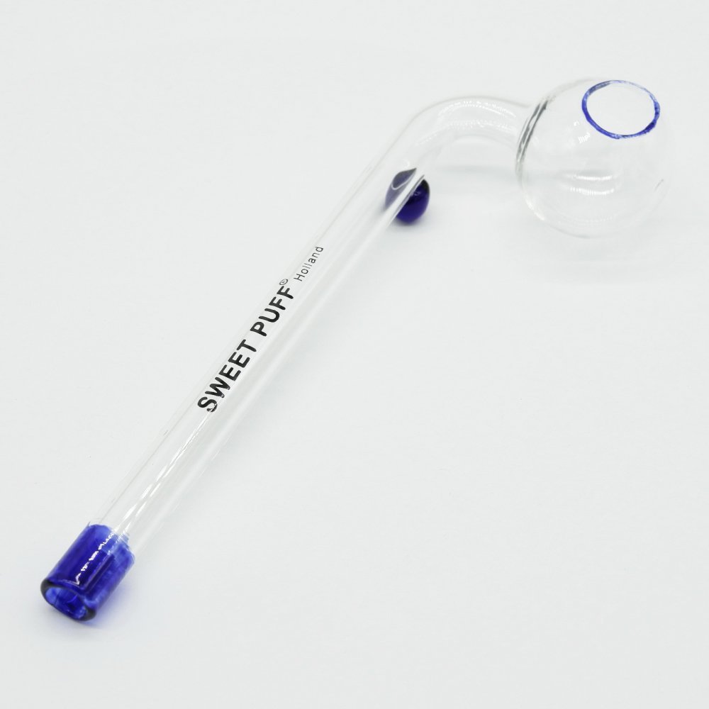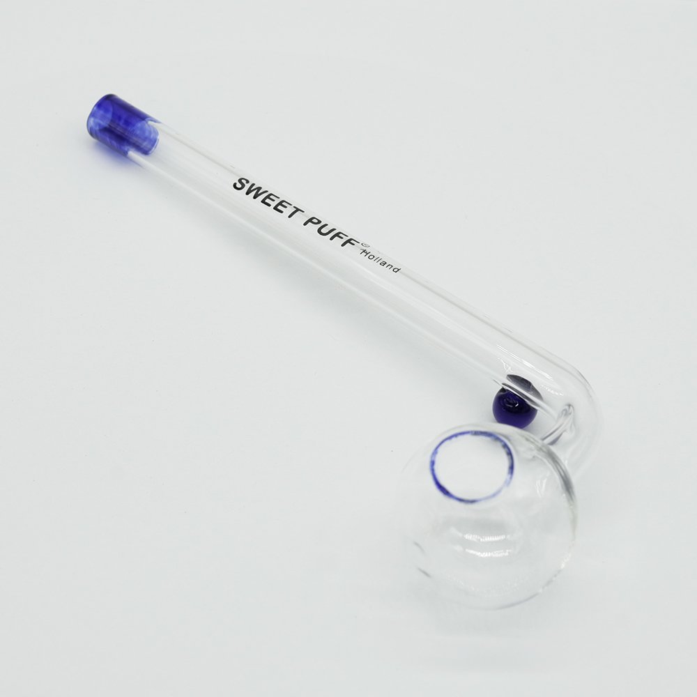 Sweet Puff Glass Pipe 10cm Blue Rim and Balancer Pack X2