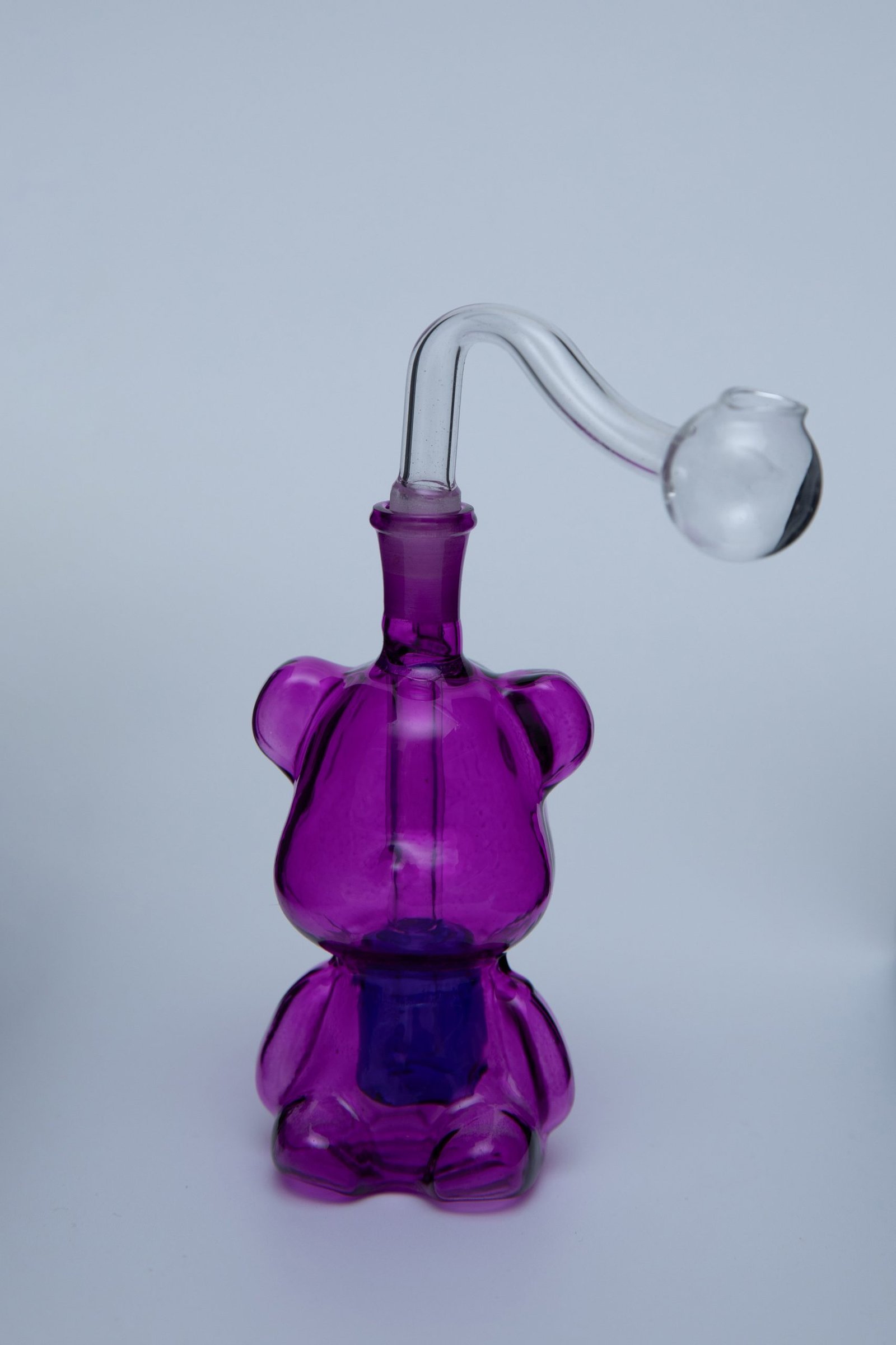 Purple Teddy Bear Bubbler with Glass Pipe 11cm